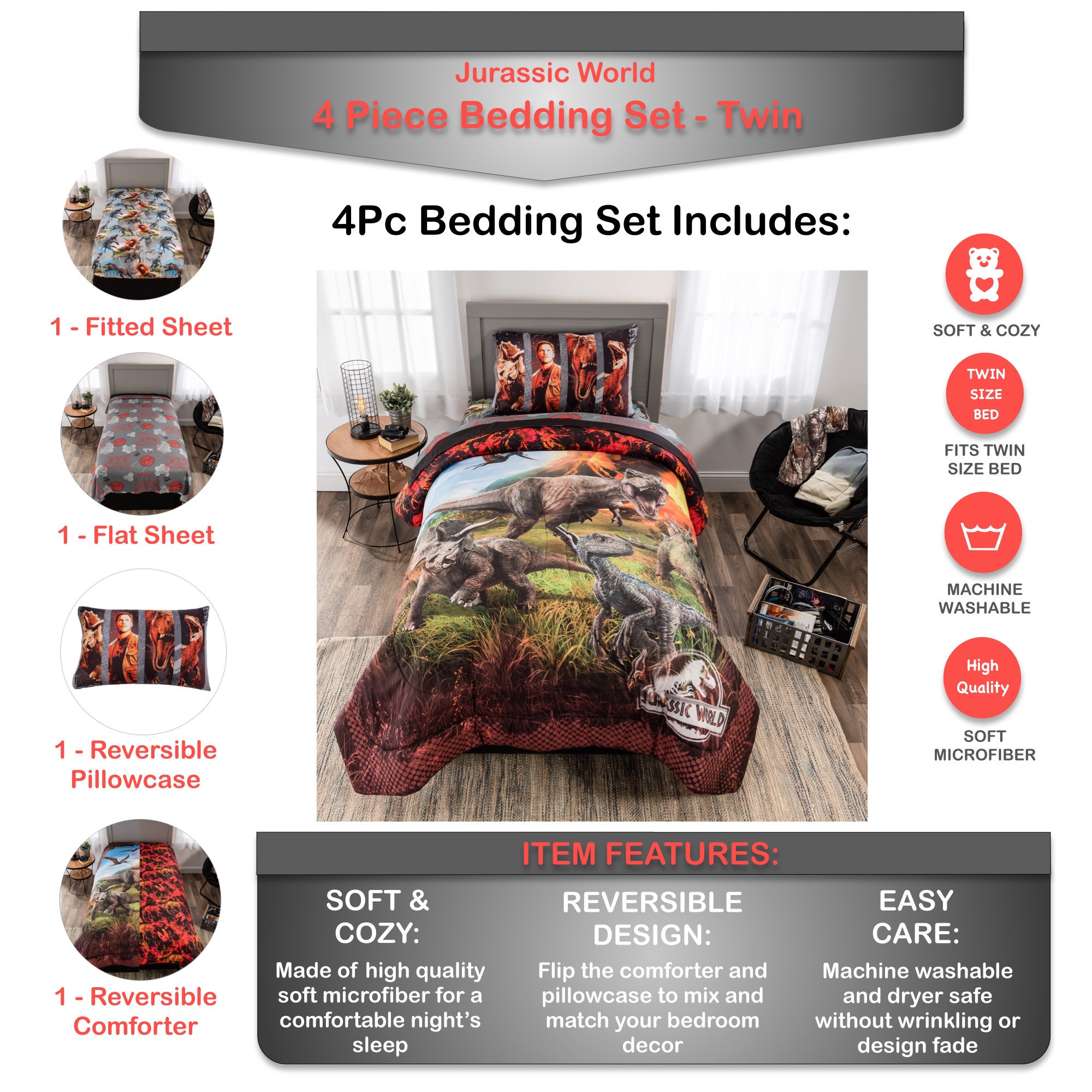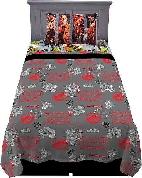 Jurassic World Twin Bedding: This jurassic world bedding ensemble comes with a reversible twin/full comforter that allows your child to change the look of the bed by simply flipping the comforter over.